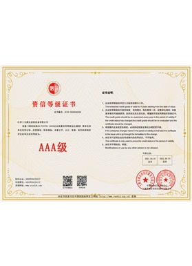 先后通過ISO9001國際質(zhì)量體系認(rèn)證、ISO14001國際環(huán)境體系認(rèn)證、OHSAS18001國際職業(yè)健康安全體系認(rèn)證及315:9002國際信用管理體系認(rèn)證、CE認(rèn)證以及取得國家知識產(chǎn)權(quán)多項(xiàng)實(shí)用型專利。